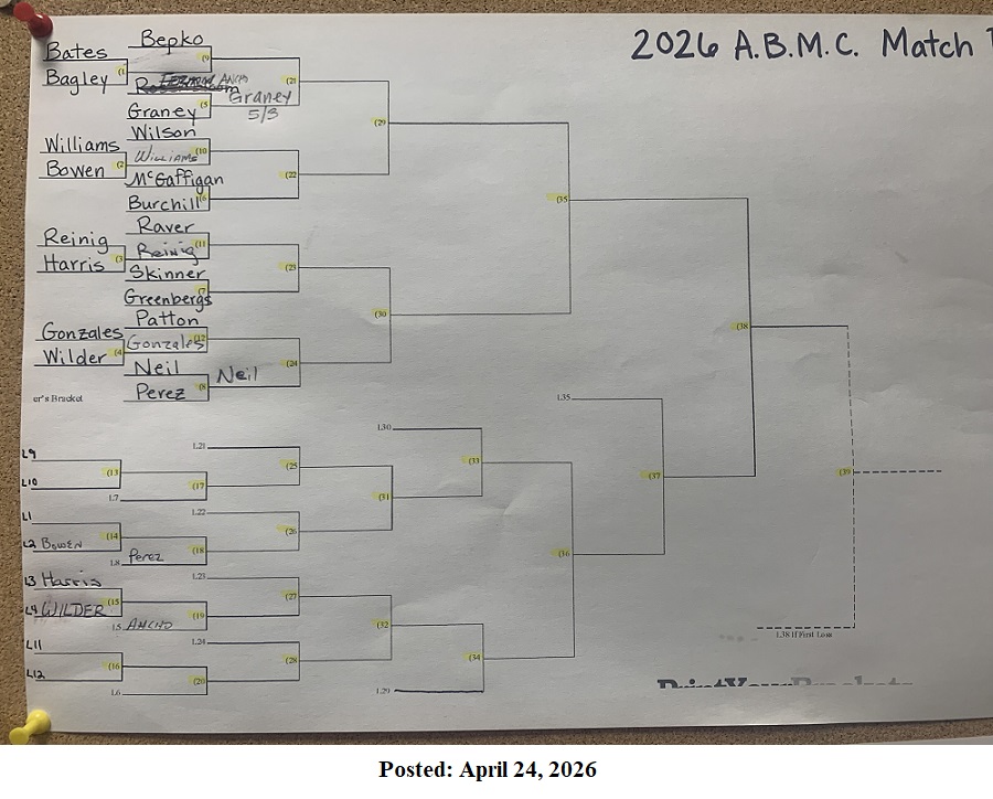 Please note that your email and phone number must be included on your entry. That is necessary so you can contact and be contacted by your opponents as you advance through the Bracket.